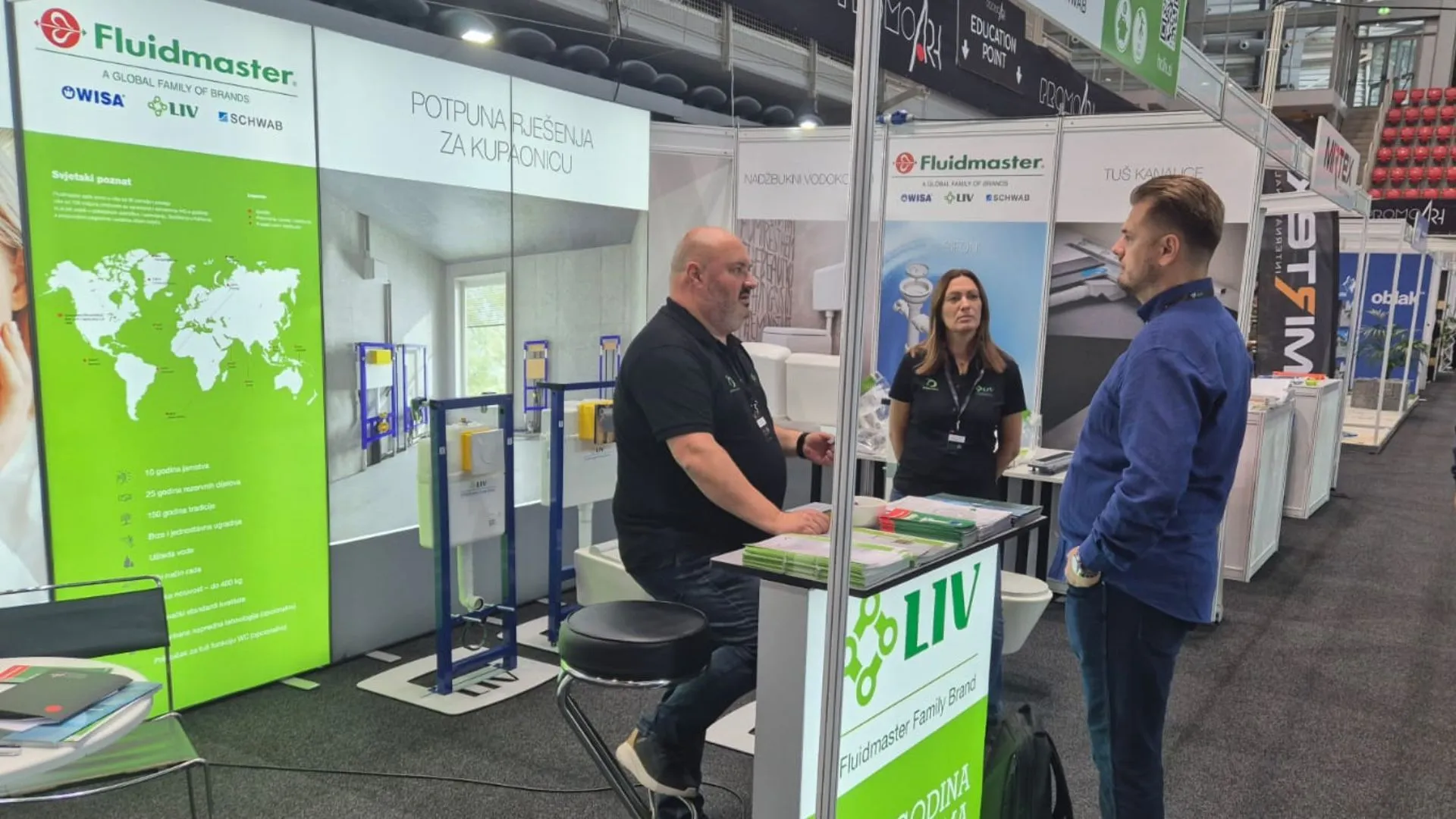 A LIV Fluidmaster standunk számos látogatót vonzott, ahol bemutattuk szanitertermékeink széles választékát – beépített és falon kívüli öblítőtartályokat, működtető gombokat, zuhanyfolyókákat, valamint különböző szelepeket. Különösen örülünk a termékeink iránti nagy érdeklődésnek, valamint az iparági szakértőkkel való eszmecserék lehetőségének.